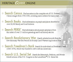 A ProQuest Company, Heritage Quest Online offers several databases. It has the complete indexed listing of U. S. Federal Census images from 1790 too 1930. They have a...