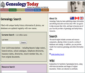 A web site for genealogists for over 11 years, Genealogy Today has unique databases, search tools and original articles, along with links to the newest sites and online r...