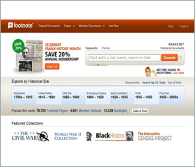 Footnote's database of genealogical documents has a collection of nearly 69 million items. In connection with the U. S. National Achieves, the Library of Congress and ot...